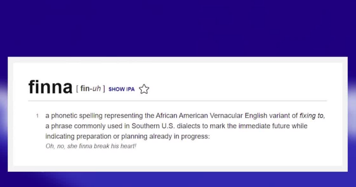 The site defines "finna" as a contraction of "fixing to" meaning "getting ready to do something."